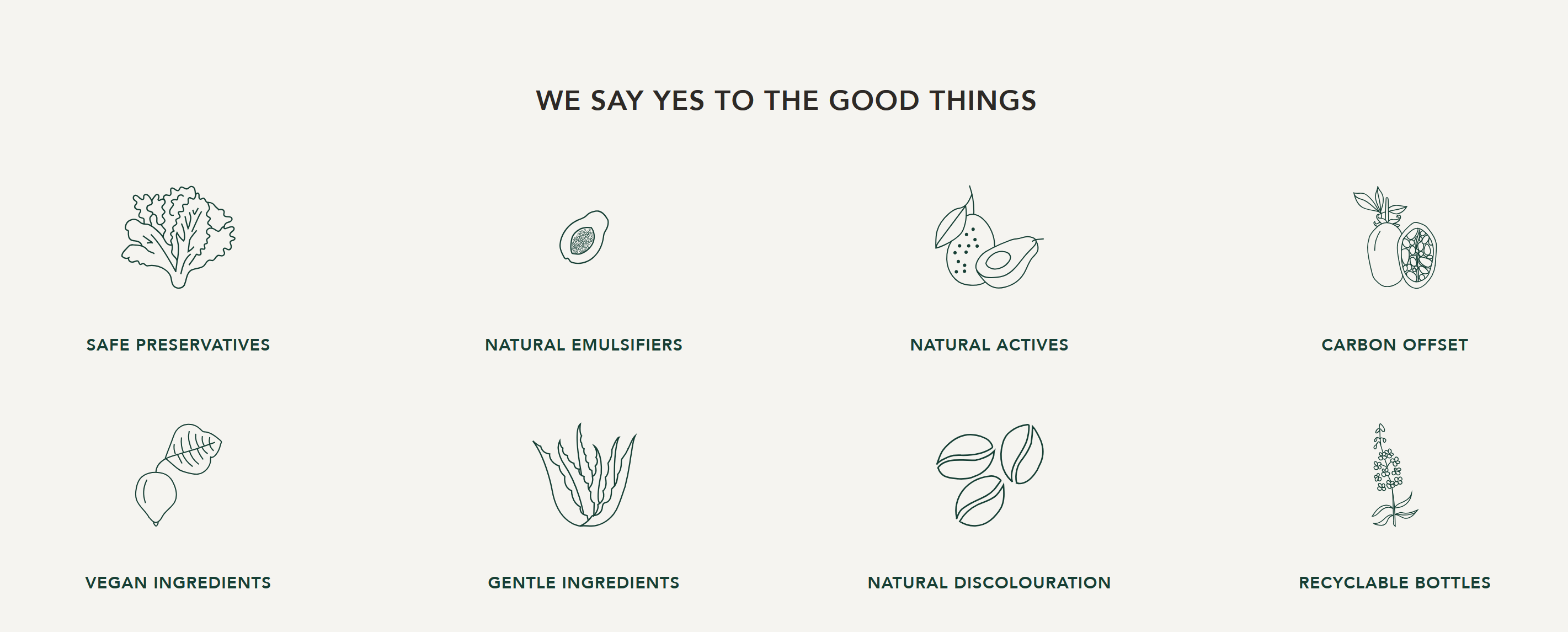 Products are either uncoloured or use ingredients such as Charcoal, Coffee or NaturalClays.